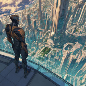 Donald gazed down upon the gleaming city of Newer York and the equally gleaming citizens that walked, rolled, or flew its gleaming streets. Long ago, or so the oldest files in his memory indicated, he had been an organic human. That human, whom Donald regarded as himself, had also gazed down upon the city, then known as New York. In those dark days, primates walked and drove the dirty streets and the only things that gleamed were puddles of urine.